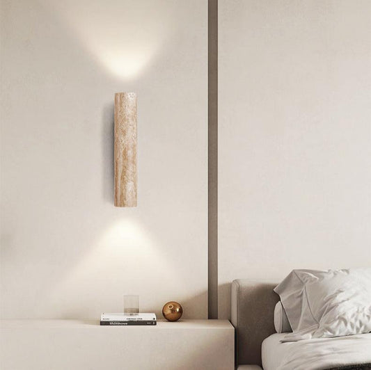 Crafted from natural travertine, each lamp highlights the stone’s unique texture through a simple, refined form. Designed with care, it adds natural warmth and understated elegance to any space.