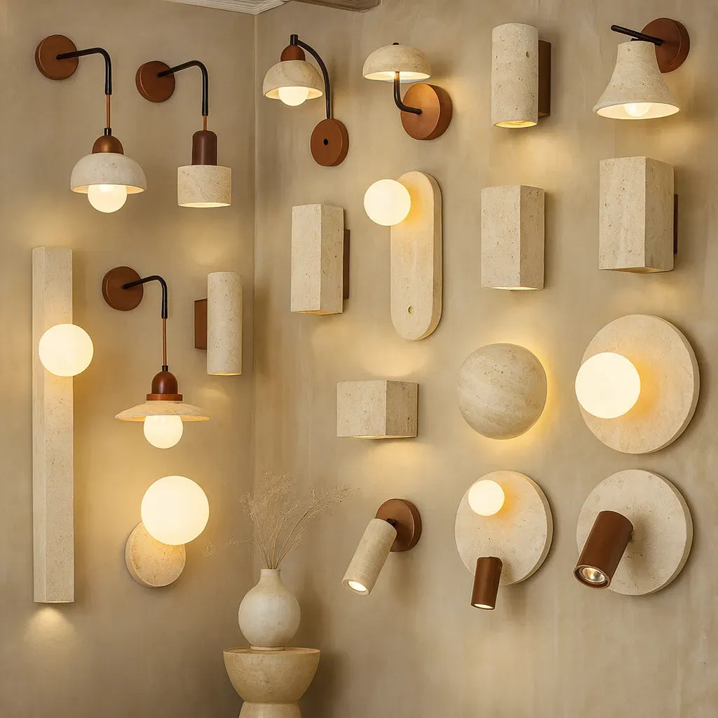 Crafted from natural travertine, each lamp highlights the stone’s unique texture through a simple, refined form. Designed with care, it adds natural warmth and understated elegance to any space.